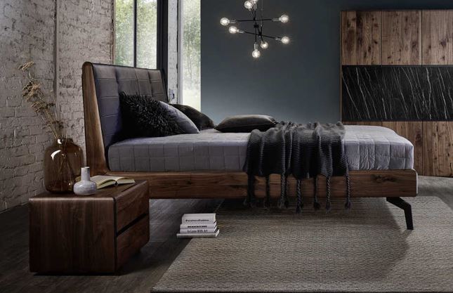 Кровать Vento, 180x200, массив орех, искуственная кожа, цвет темно серый, 118446 taupe